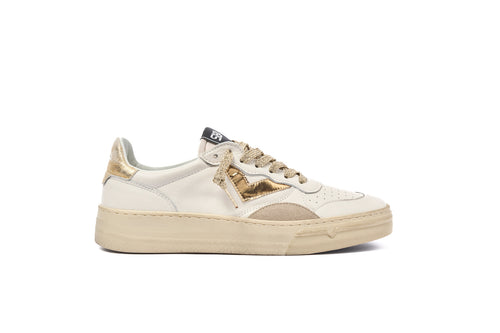 Sneakers bassa in pelle colore bianco con inserti in camoscio colore beige.